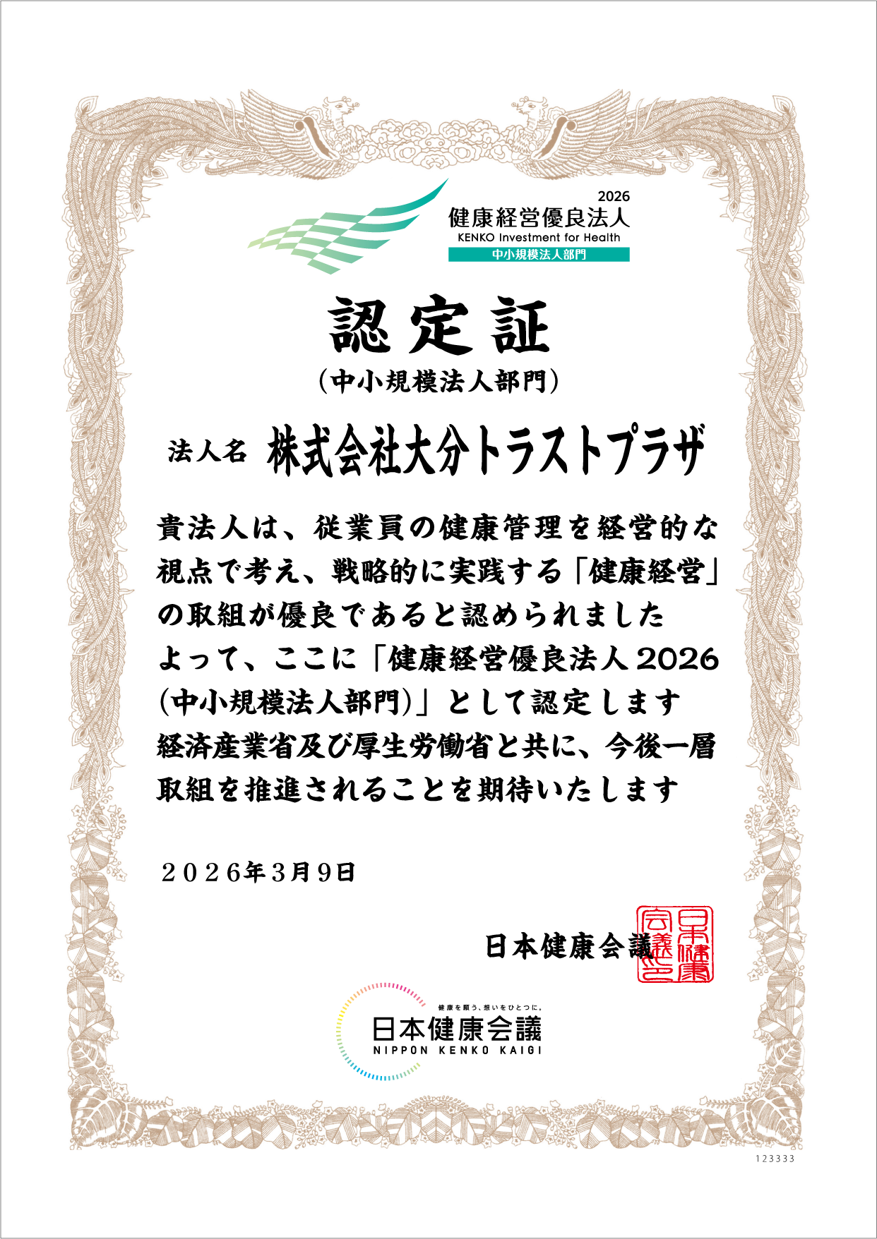 2025年10月 三井住友海上火災保険株式会社の「MSプロフェッショナル認定制度」において、上位ランクである『AA』に認定されました。